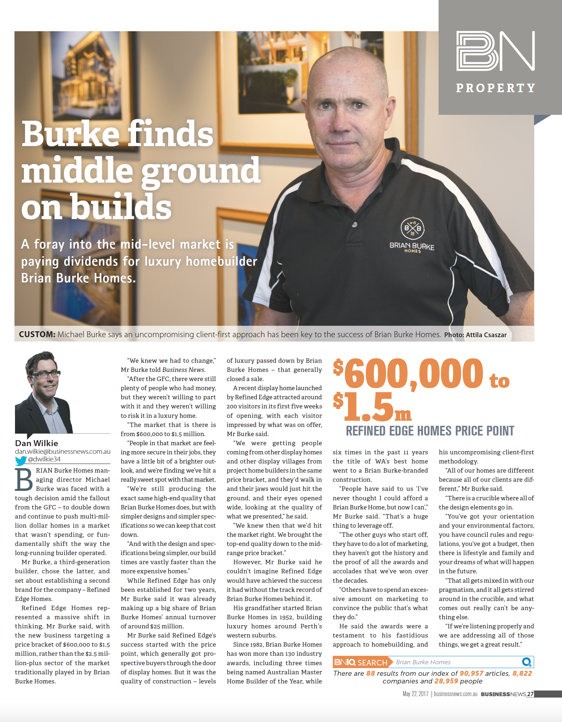 Managing Director, Michael Burke talks to Dan Wilkie from Business News about Refined Edge Homes and how his foray into the mid-level market is paying dividends.